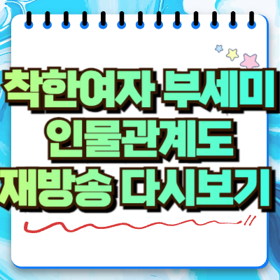 사회적 위치를 숨긴 채 새 인생을 살아야 하는 여자의 이야기, 그 속에서 펼쳐지는 감정과 갈등은 생각보다 더 복잡합니다. 최근 방영 중인 드라마 ‘착한 여자 부세미’는 매회 화제를 모으며 많은 시청자들의 관심을 받고 있습니다. 인물 간의 미묘한 감정선과 정체가 뒤엉킨 관계, 그리고 그녀의 숨겨진 과거까지. 이 글에서는 드라마의 인물관계도부터 다시보기 방법, 원작 여부까지 하나씩 정리해보겠습니다.